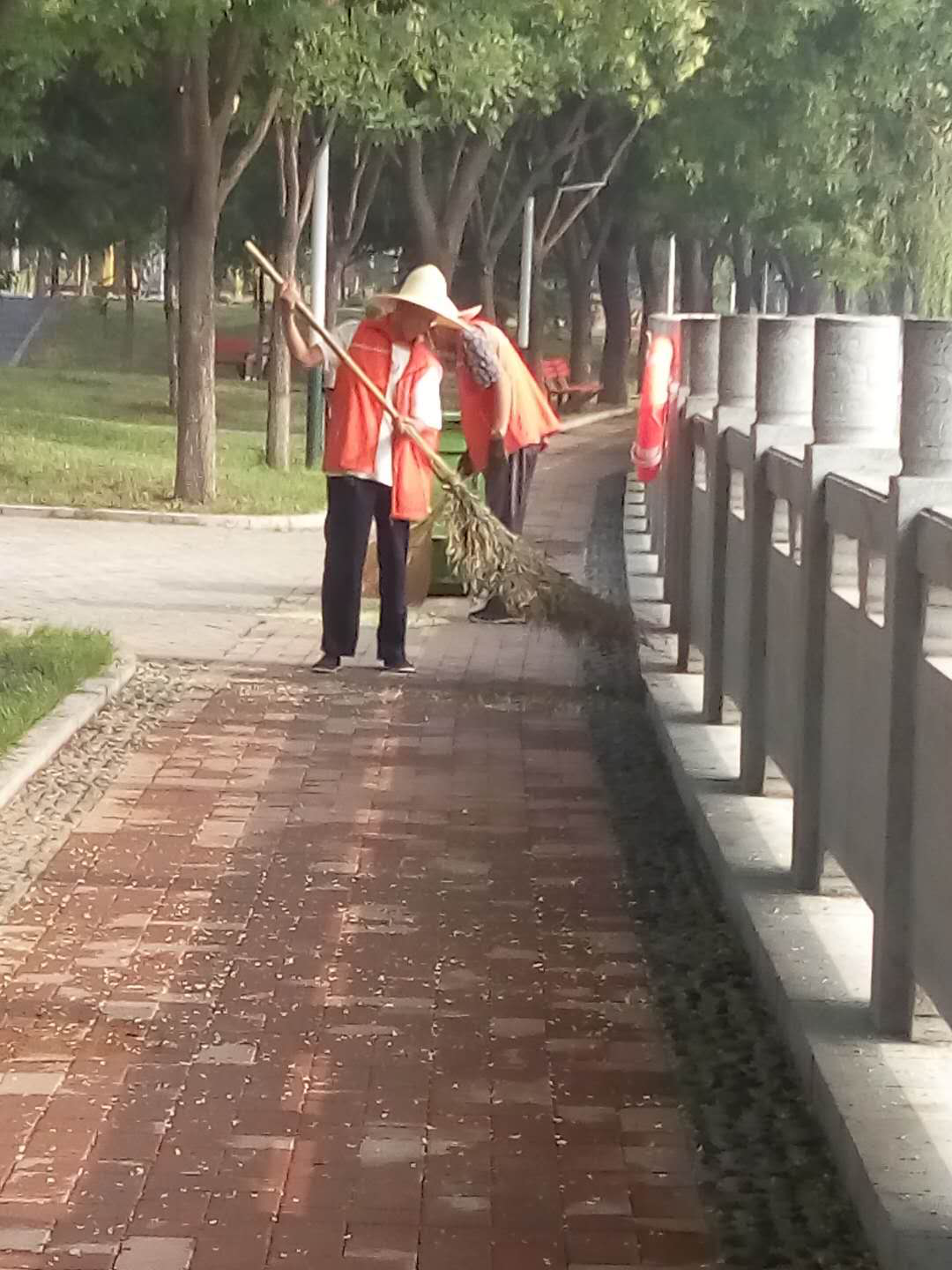 專注、認(rèn)真的清掃路面,一絲一毫也不漏掉