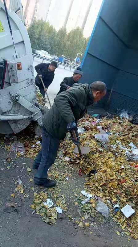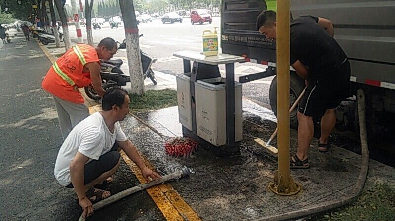 認真清洗垃圾桶周圍油污