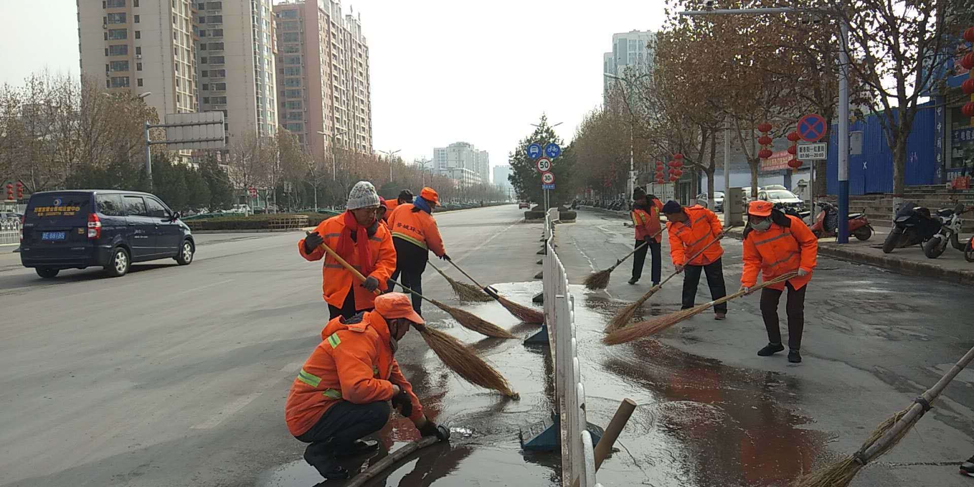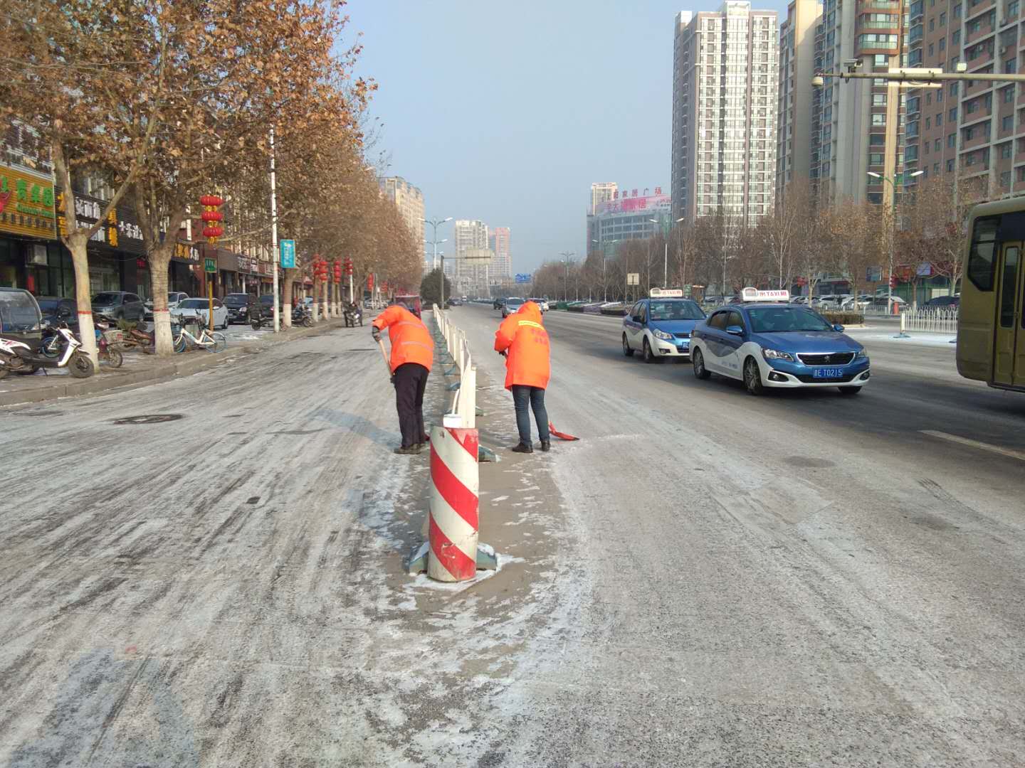 不畏嚴寒,清掃路面積雪