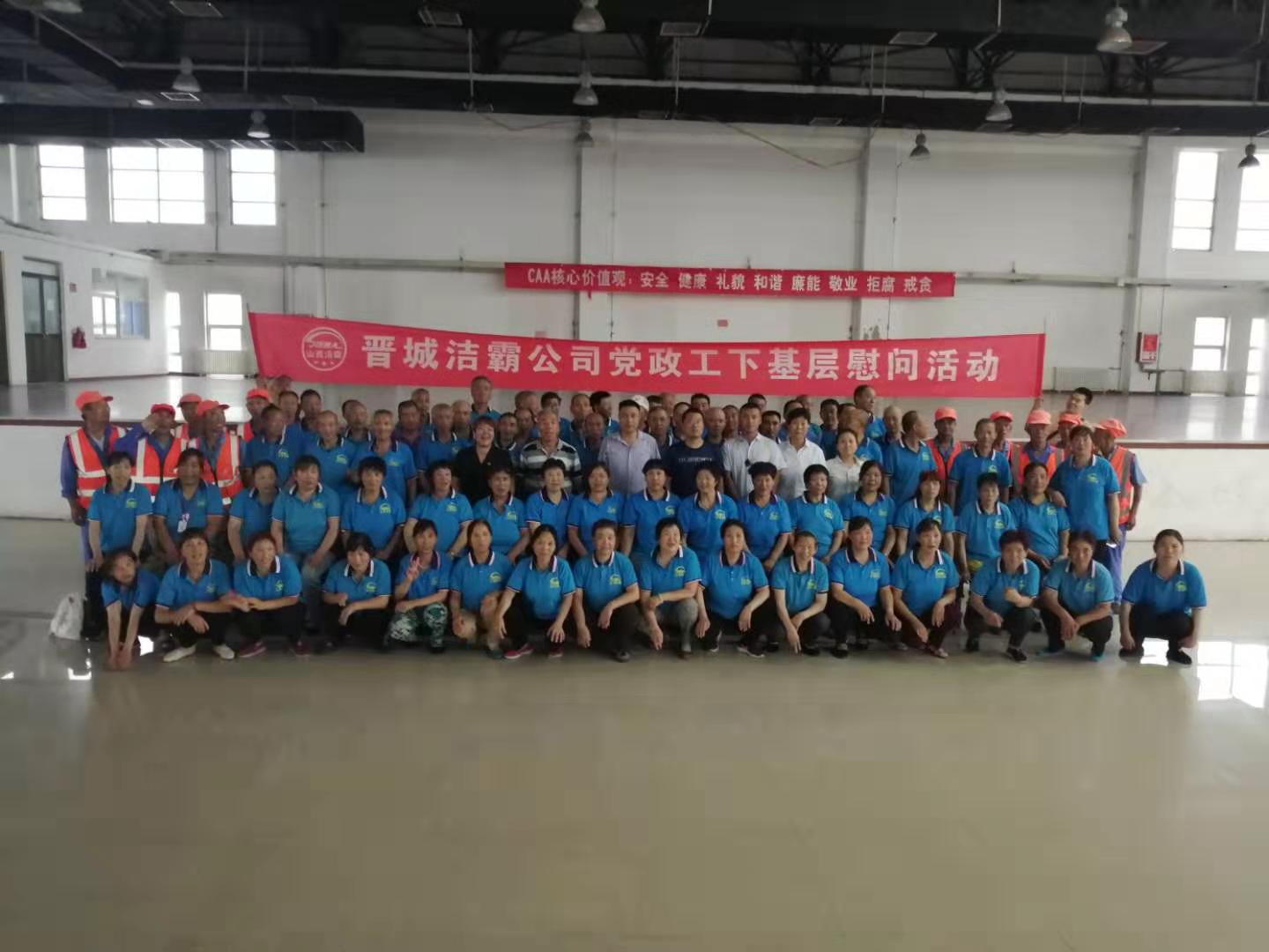 進(jìn)入大暑以來(lái),連日高溫、驕陽(yáng)似火,酷暑難耐。7月26日下午,晉城潔霸公司黨政工慰問(wèn)活動(dòng)小組來(lái)到了暑期“情系一線”下基層慰問(wèn)系列活動(dòng)的第四站富士康晉城科技工業(yè)園A區(qū),向辛勤奮戰(zhàn)在富士康一線的員工表示慰問(wèn),公司總經(jīng)理程晉軍從百忙之中抽身出來(lái)親自參加了慰問(wèn)活動(dòng),傳遞了公司對(duì)員工的關(guān)愛。