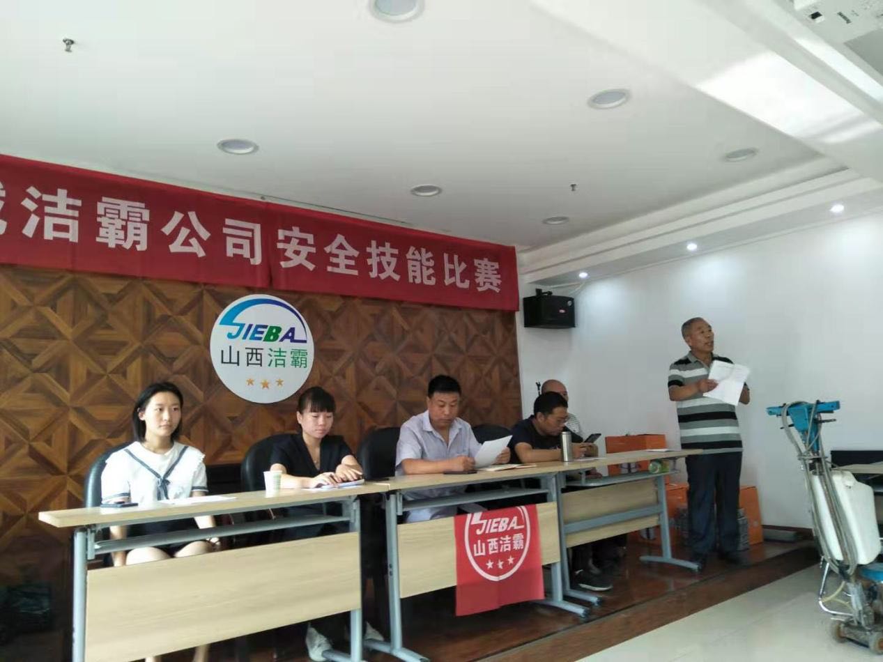 8月7日上午,由潔霸公司黨政工聯(lián)合公司工程部精心組織的一場安全技能比賽在公司活動中心舉辦,公司工程部員工積極踴躍參賽,比賽進行得精彩熱烈,公司其他單位、部門的管理人員觀摩了比賽。