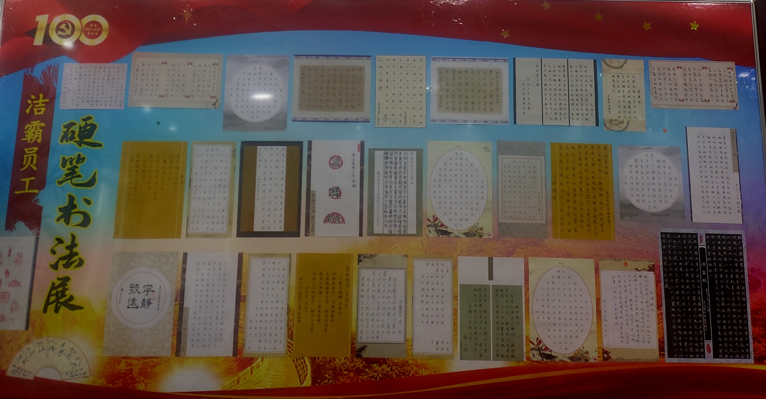 為迎接中國共產(chǎn)黨建黨100周年,弘揚中華優(yōu)秀傳統(tǒng)文化,營造濃厚的企業(yè)文化氛圍,五一前夕,晉城市潔霸清潔服務(wù)股份有限公司舉辦了“喜迎建黨百年華誕”硬筆書法比賽活動。