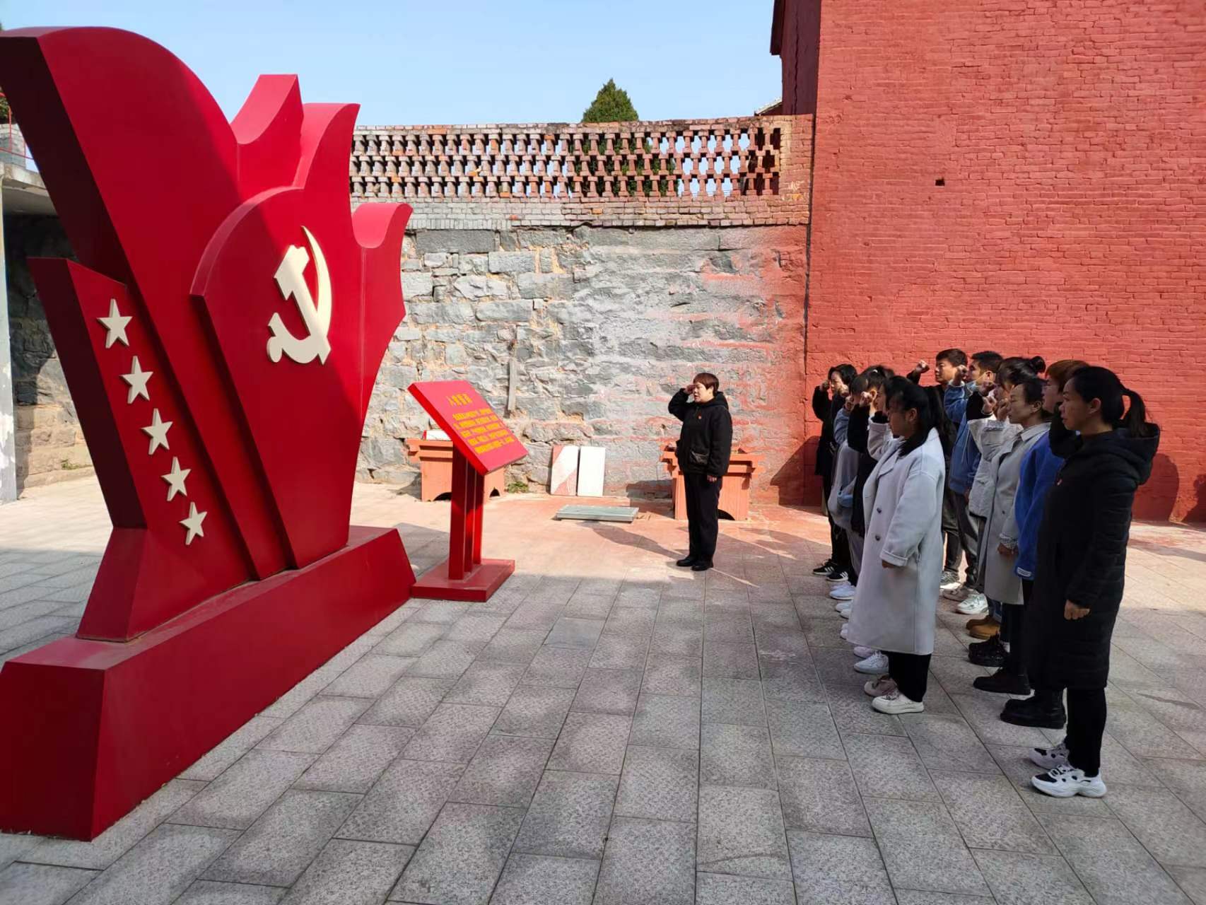 參觀了展覽后,大家站在鮮紅的黨旗雕塑前,莊嚴(yán)地舉起右拳,重溫了入黨誓詞。一聲聲鏗鏘有力的誓言,回響在大院內(nèi),表達(dá)了大家對黨無限忠誠,熱愛黨,永遠(yuǎn)跟黨走的堅定決心。