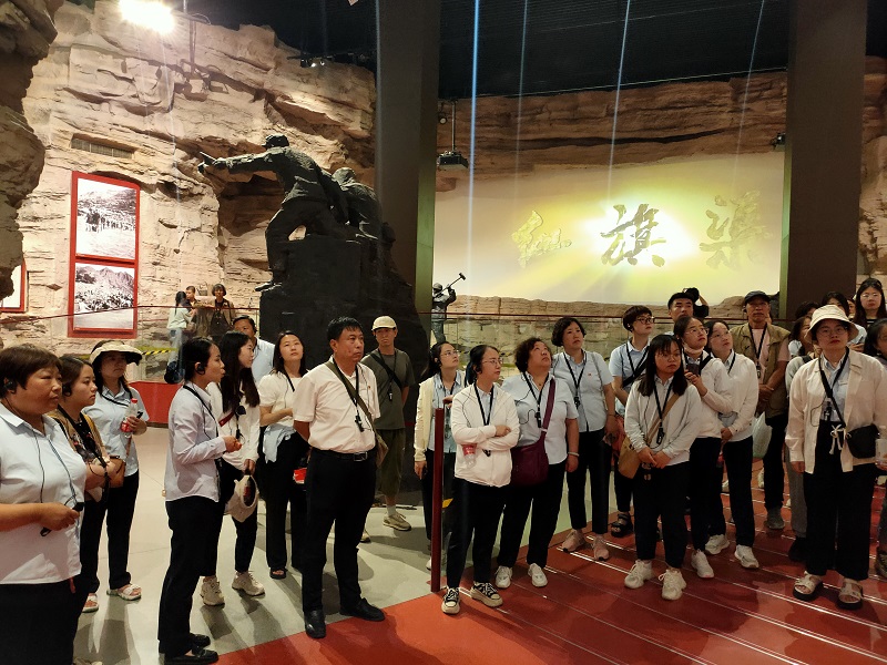 走進(jìn)紅旗渠紀(jì)念館,大家跟隨講解員的腳步,在千年旱魔,世代抗?fàn);紅旗引領(lǐng),創(chuàng)造奇跡;英雄人民,太行豐碑;山河巨變,實(shí)現(xiàn)夢想;繼往開來,精神永恒五個(gè)部分逐一駐足學(xué)習(xí),通過一件件珍貴的物品,一幅幅生動的圖片、一幀幀震撼的畫面、一個(gè)個(gè)感人的故事,讓大家身臨其境感受到林州人民建造人工天河時(shí)不畏艱險(xiǎn),頑強(qiáng)拼搏,緊靠一錘一鏟削平1250座山頭、鑿?fù)?11個(gè)隧道、架設(shè)151個(gè)渡槽的恢弘場景。在場的各位都深深地被“自力更生、艱苦創(chuàng)業(yè)、團(tuán)結(jié)協(xié)作、無私奉獻(xiàn)”的紅旗渠精神所感動,切實(shí)感受到中華民族勤勞堅(jiān)韌的優(yōu)良傳統(tǒng),領(lǐng)悟社會主義是干出來的,新時(shí)代是奮斗出來的。
