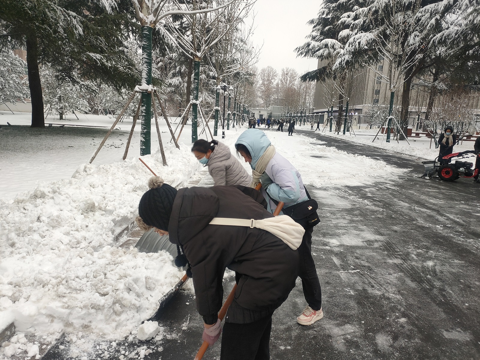 15日晚,晉城市潔霸清潔服務(wù)股份有限公司黨支部在支部群下發(fā)到市政府除雪通知。16日一大早,公司全體黨員和入黨積極分子以雪為令,聞雪而動(dòng),積極投身到市政府清掃積雪的活動(dòng)中。他們出動(dòng)除雪車進(jìn)行清雪除雪作業(yè),把厚厚的積雪推到了路邊,隨后,大家有的用除雪鏟推,有的拿鐵鍬鏟,分工明確,配合默契,同市直相關(guān)單位工作人員一起把市政府大院內(nèi)路面的積雪清掃干凈,營造了干凈整潔的出行環(huán)境。